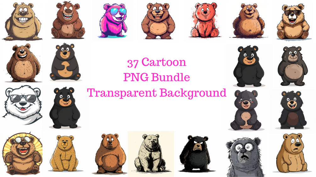 Step into a world of fun and laughter with our fantastic bundle of 37 high-quality PNG clipart images featuring cute and funny cartoon bears! These delightful illustrations are perfect for kids and anyone who loves a good smile.