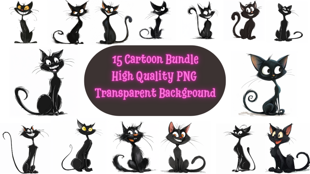 Cartoon PNG Bundle - 15 Funny Black Cats