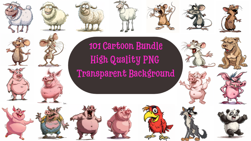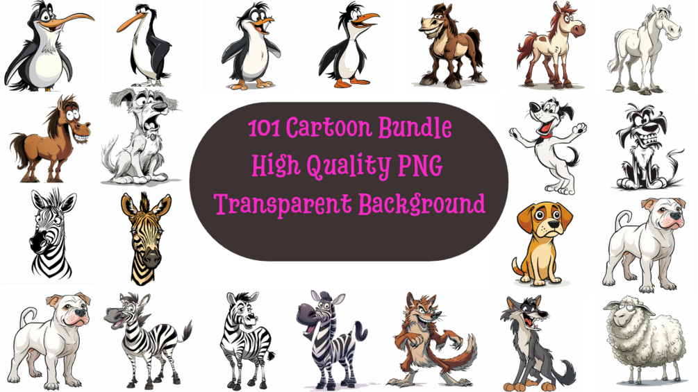 Cartoon PNG Bundle - 101 Funny Animals And Birds