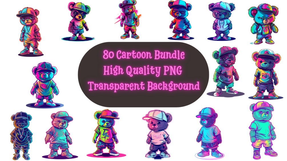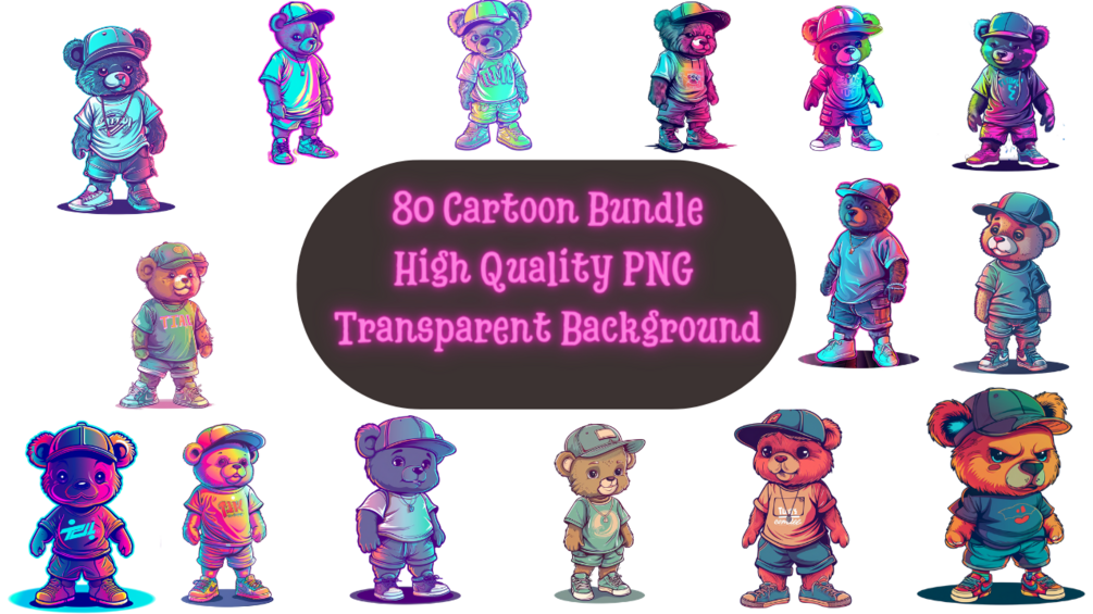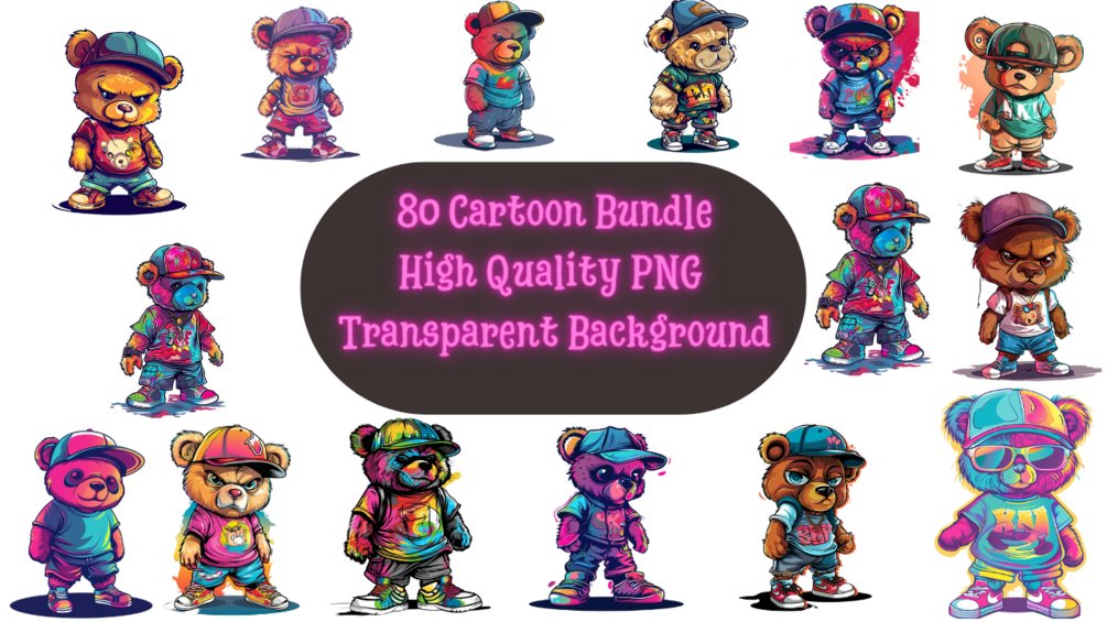 Calling all T-shirt designers and streetwear enthusiasts! This epic bundle is dropping 80 fire PNG images of cartoon teddy bears rocking the freshest threads.